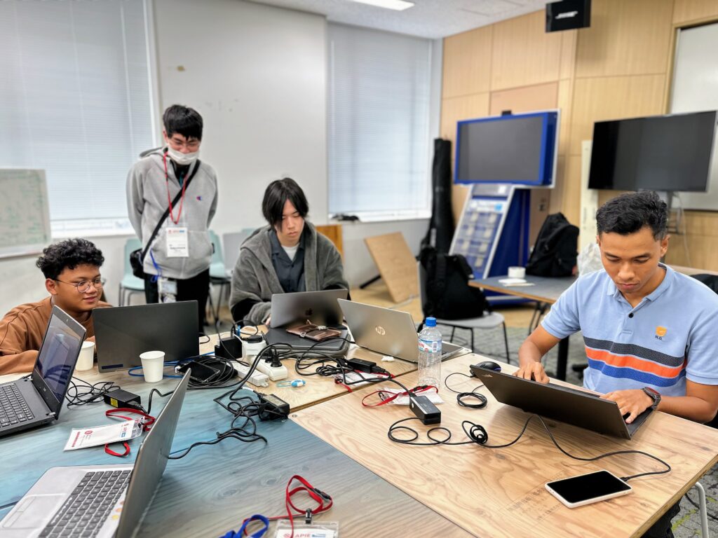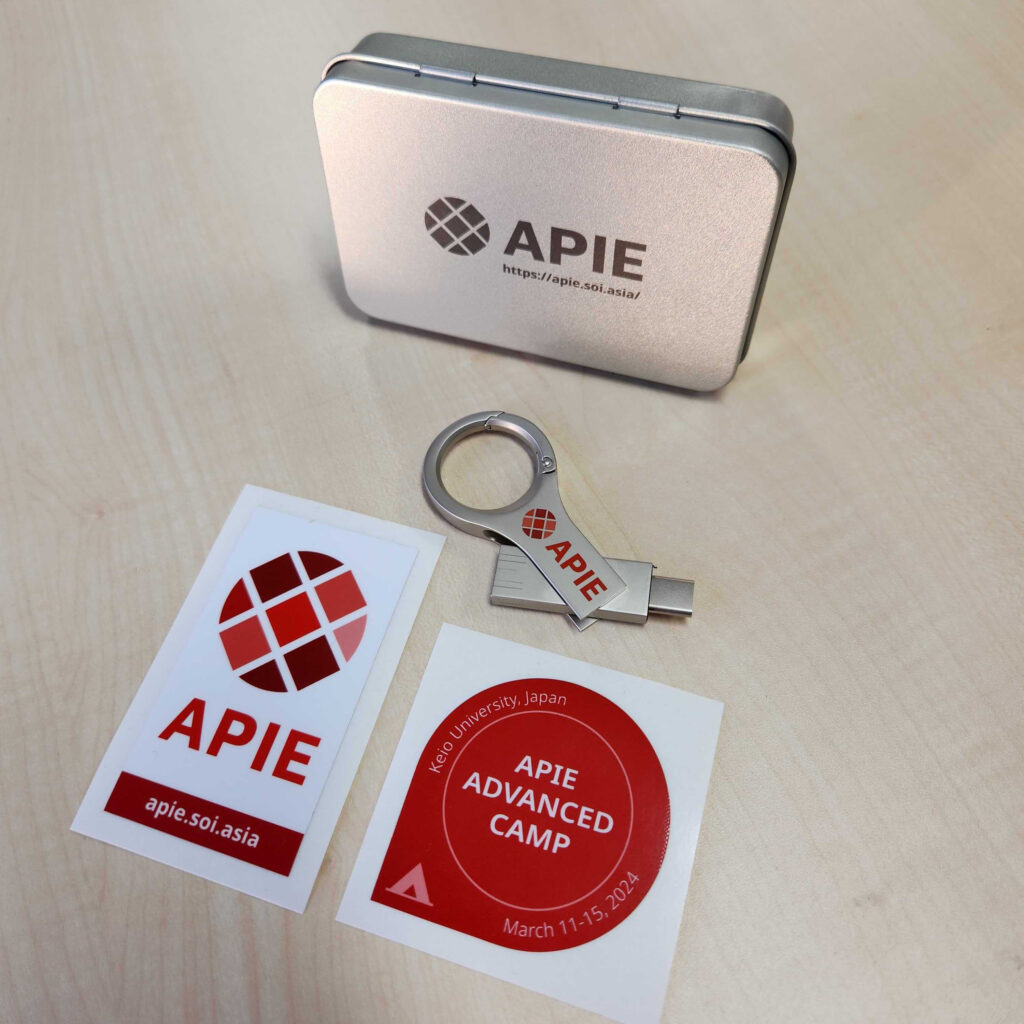 A team of teaching assistants (TAs) comprised of students from Keio University fully assisted the event, from preparing and facilitating activities to providing technical support for each of the groups. After the participants’ arrival at the campus, TAs took them to the Kawasaki Business Incubation Center (KBIC). All participants and contributors were also welcomed with small gifts prepared for this camp: an APIE flash memory (USB-A and C) keyholder and APIE stickers.
