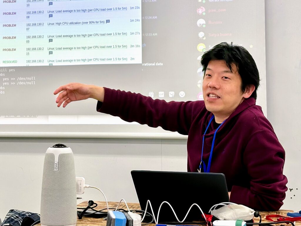 On day 4, Dr. Yamamoto returned with the basics of systems and server monitoring and the perils of not implementing it correctly. In the afternoon, Dr. Husni, who had started a hands-on session about VPN router configuration for connecting to Global REN on day 3, helped participants complete their tasks.