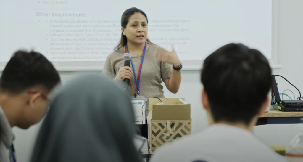 APIE Advanced Camp, a new component of the APIE program, is a five-day training course that focuses on BGP, IXP, SQL, cloud computing, network operation, and web service development. Participants put into practice the skills and knowledge acquired throughout their APIE learning journey, which includes online courses, e-workshops, and a camp.