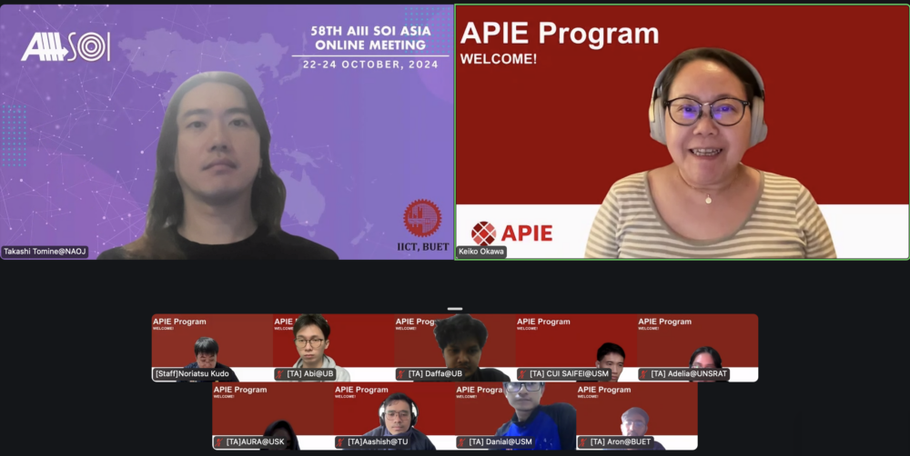 On November 2, the APIE Program Batch 5 concluded its core course activities with a final e-workshop featuring Takashi Tomine from the National Astronomical Observatory of Japan. This batch was marked by significant milestones, including the first participation of students from Myanmar and the active involvement of teaching assistants in promoting APIE within their institutions.