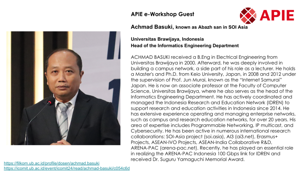 - Indonesia Research and Education Network (IDREN), by Achmad ‘Abazh’ Basuki (Universitas Brawijaya)