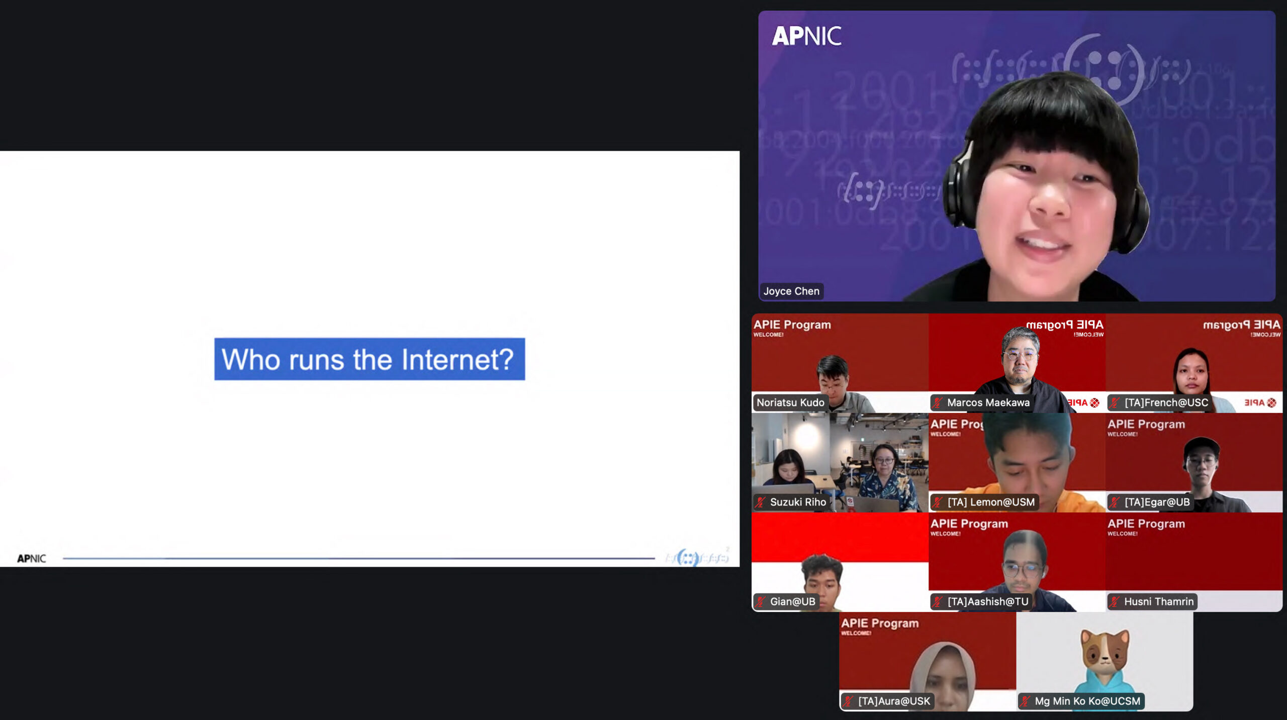 On May 3, we wrapped up the core course activities for Batch 6 of the APIE Program with an inspiring e-workshop by Joyce Chen, Senior Advisor for Strategic Engagement at APNIC. Her session gave students a broad and engaging look into the world of global Internet governance—how it works, who’s involved, and why it matters.
