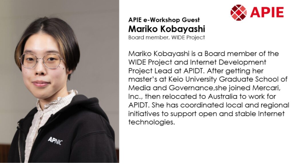 • Mariko Kobayashi (APIDT, WIDE Project), who introduced the fundamentals of Internet governance and highlighted how young professionals can engage in shaping the Internet